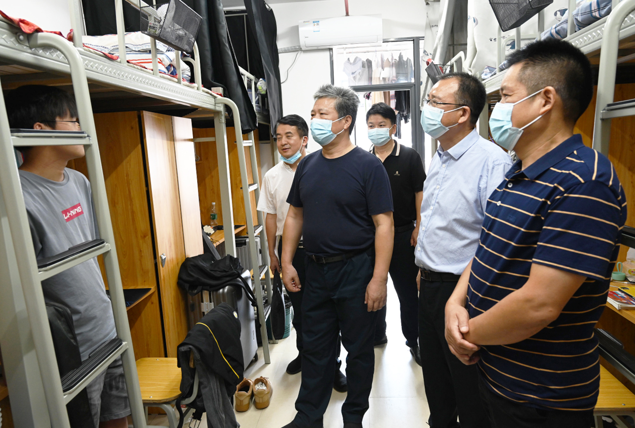 会后,曾四清一行实地察看了永利官网第一食堂和部分学生宿舍的住宿环境。
