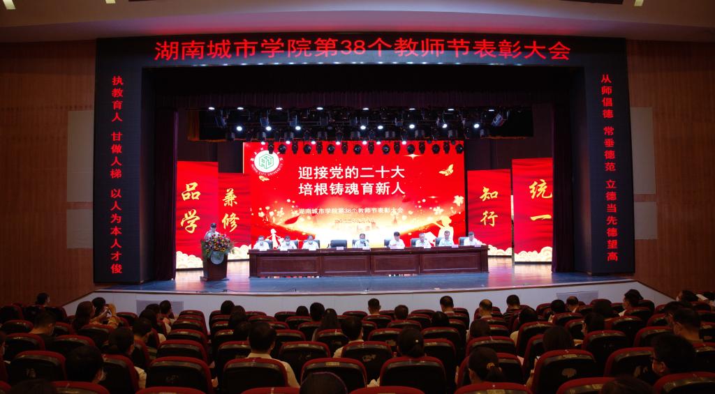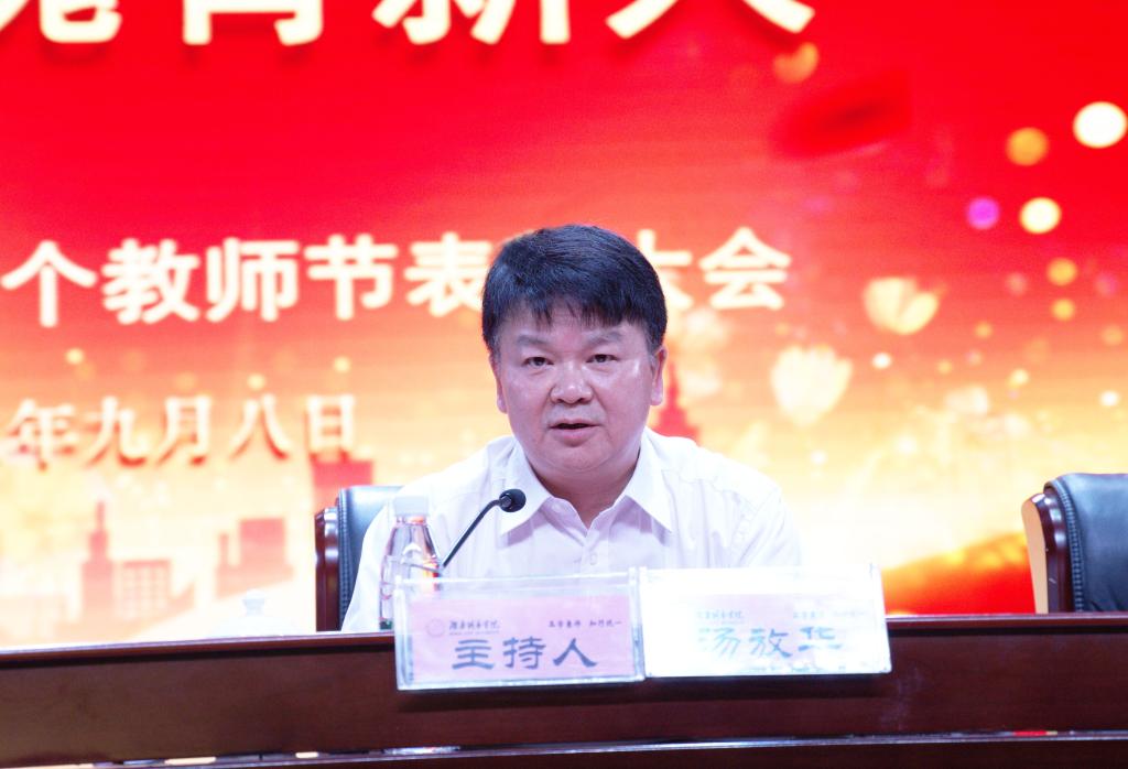 本网讯(通讯员 雷欢)三尺讲台,三寸舌,三寸笔,三千桃李;十年树木,十载风,十载雨,十万栋梁。2022年9月8日下午,永利官网庆祝第38个教师节暨表彰大会在音乐厅举行。全体校领导、机关处室负责人、二级学院领导及受表彰对象、教师代表等200多人参加了大会。大会由校长汤放华主持。