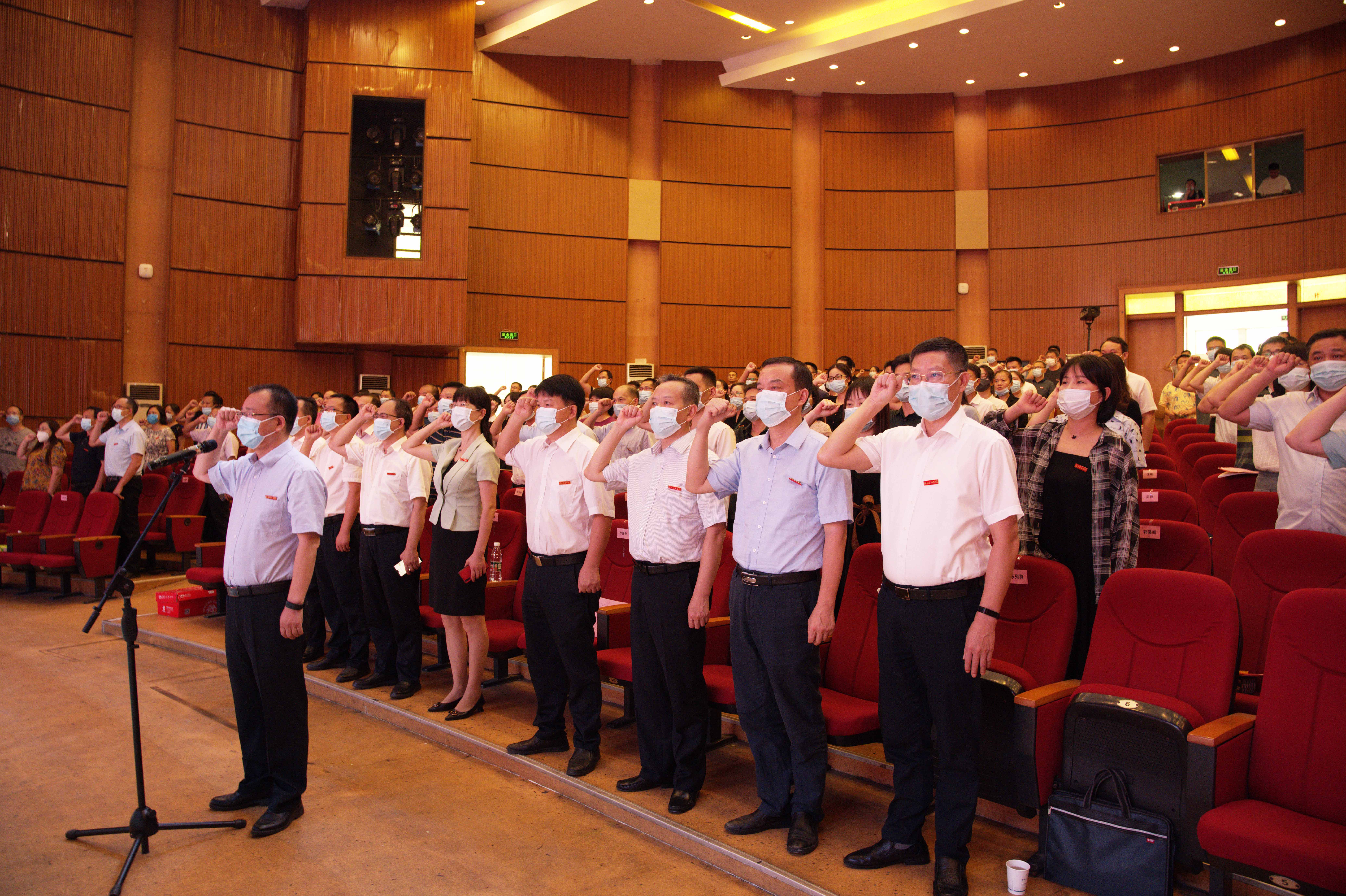 大会在庄严的国歌声中拉开帷幕。全体人员在党委书记李建奇的带领下庄严宣誓:我志愿成为一名人民教师,忠诚党的教育事业……为教育发展、国家繁荣和民族振兴努力奋斗!