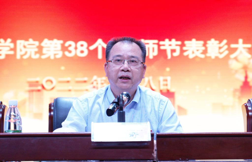 李建奇发表讲话。他代表学校党委行政向为学校事业发展倾注智慧和心血的全体教职员工、离退休老同志致以节日的问候和衷心的感谢,向受表彰的师德先进个人、优秀教师、优秀教育工作者表示热烈的祝贺和崇高的敬意。他指出,过去的一年,学校认真贯彻习近平总书记关于教育的重要论述和全国全省教育大会精神,主动服务湖南省“三高四新”战略定位和使命任务,着力加强教师队伍建设,为提高人才培养质量、增强科研创新能力、服务地方经济社会发展提供了坚强队伍保障,学校教育事业发展取得一系列新成绩。师资力量明显加强,教育教学核心指标明显提升,科研能力明显增强,人才培养质量明显提高,学校综合实力明显上升。