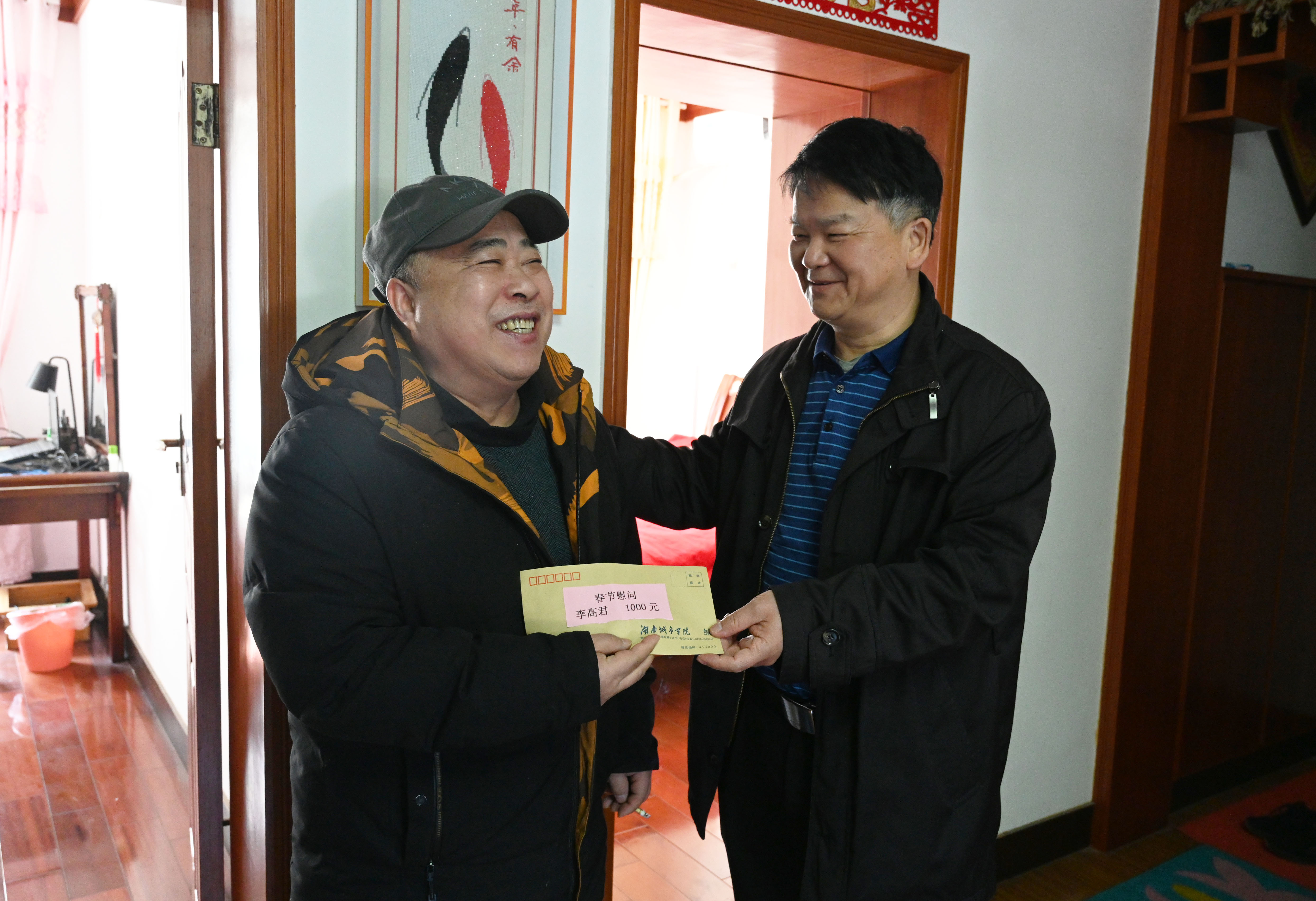 本网讯(通讯员 张艳霞)新春将至,岁寒情深。1月12日上午,学校党委书记汤放华在组织部、离退休工作处相关负责人陪同下,走访慰问了永利官网部分困难党员和离退休老同志,为他们送去新春的问候和诚挚的祝福,并为他们送上慰问金。