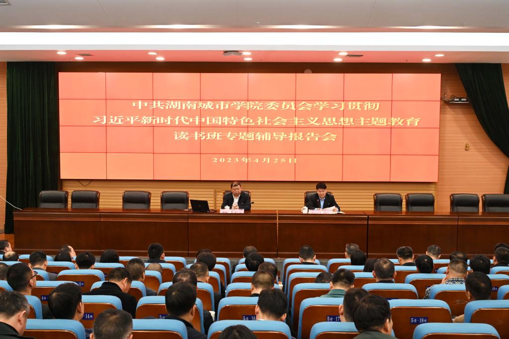 本网讯(记者 文彦波)4月25日晚,yl34511线路中心学习贯彻习近平新时代中国特色社会主义思想主题教育读书班在图书馆报告厅开班。湖南工业大学党委书记刘望应邀作专题辅导报告。学校党委书记汤放华主持报告会并作动员讲话。学校副处级以上领导干部参加读书班。