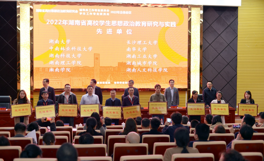 本网讯(通讯员 王立刚)近日,湖南省高校思想政治教育研究会辅导员工作专业委员会、学生工作专业委员会2022年年会在湖南工学院举行。本次大会以“踔厉奋发强赋能,培根铸魂育新人”为主题,表彰了一批先进单位和个人,永利官网获评“2022年湖南省高校学生思想政治教育研究与实践先进单位”荣誉称号,党委学生工作部部长余洪作为先进单位代表作经验交流。