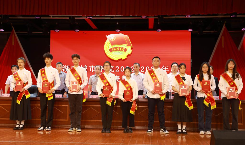 随后,参会领导为获奖先进集体及个人颁奖。第二届“城院之星”获得者、材料与化学工程学院学生夏婷,优秀教师团干代表、美术与设计学院/国际教育学院教师颜丽珍分别作了发言。