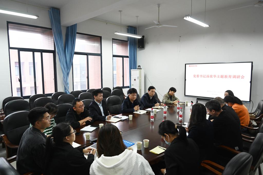 汤放华认真听取了大家在班子队伍建设、师资队伍建设、学科专业建设、学风建设、课程思政建设、心理健康教育等方面提出的意见建议,并与学院班子成员、教师一起找短板、查弱项,共同商讨研究解决方案和改进措施。