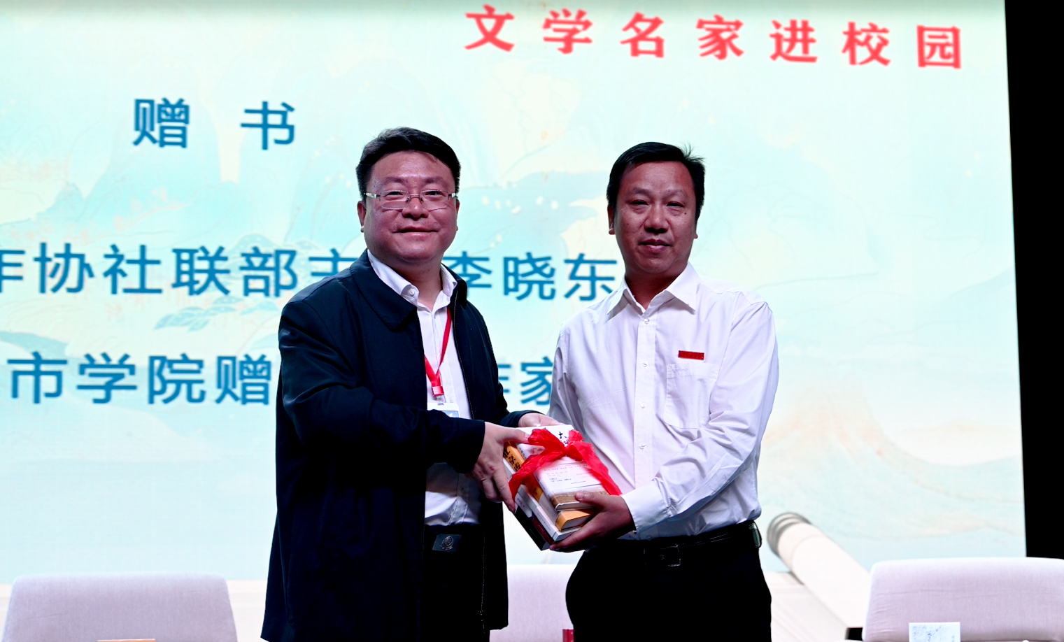 接下来,举行了受邀作家向yl34511线路中心赠书仪式,学校图书馆馆长莫连光代表学校接受了赠书。
