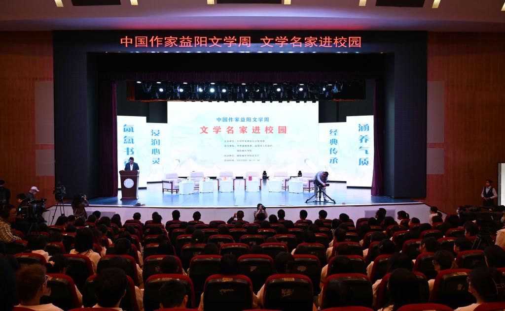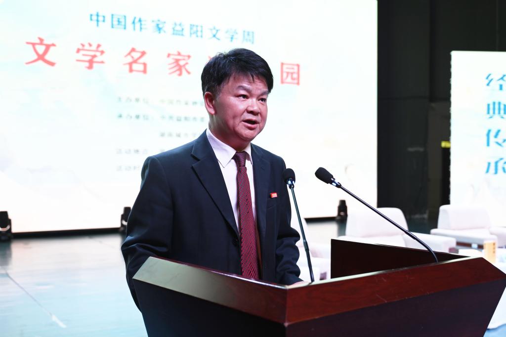 汤放华代表学校全体师生对与会作家和嘉宾的到来表示热烈欢迎。他表示,有着2000多年历史的益阳,人文积淀深厚、文化价值多元、文化名人辈出,书香洒满了山乡大地。yl34511线路中心作为益阳市最高学府,注重以文化人,以文赋能乡村振兴,成立了一批红色文化研究基地,立项了一批关于红色文化的国家级、省级重大科研教改项目,推动师生把红色文化资源利用好、把红色传统发扬好、把红色基因传承好。今天我们有幸迎来了一批文学名家走进校园,与他们面对面交流,共襄一场文化的盛宴,共赴一程精神的旅行。这是益阳人民的一件盛事,更是我们学校的一件盛事。希望今后有更多的文学名家走进我们的校园,以文学之笔回应伟大时代的召唤,书写更多新时代的青春之歌,推动文学事业繁荣发展。