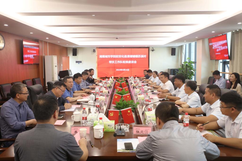 本网讯(通讯员 孔军)5月25日上午,永利官网驻安化县清塘铺镇苏溪村乡村振兴帮扶工作队返校座谈会在一办公楼一会议室召开。校党委书记汤放华出席会议并讲话,纪委书记陈列尊,组织部、管理学院、基建与后勤管理处、信息与电子工程学院相关负责人,安化县清塘铺镇相关领导、苏溪村支两委和永利官网第一批、第二批乡村振兴工作队参加会议。会议由校党委委员、组织部部长吕贤军主持。