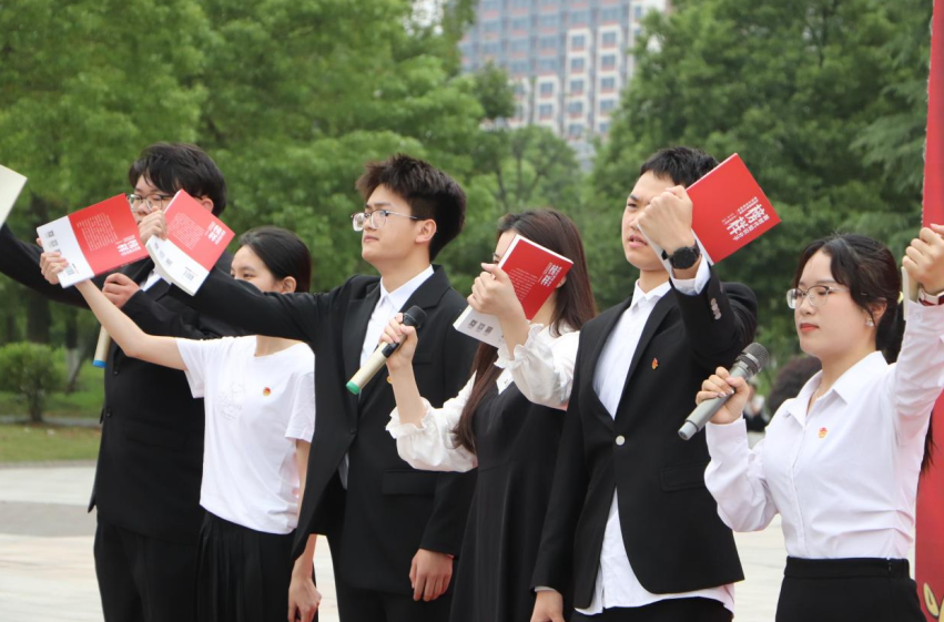 “青年强则国家强,我们必将不忘初心、牢记使命,定要成为有理想、敢担当、能吃苦、肯奋斗的新时代好青年,让艳阳高照祖国大地,更加灿烂辉煌!”开幕式上,优秀团员代表诵读诗歌“踔厉奋发,砥砺前行”,响彻校园。