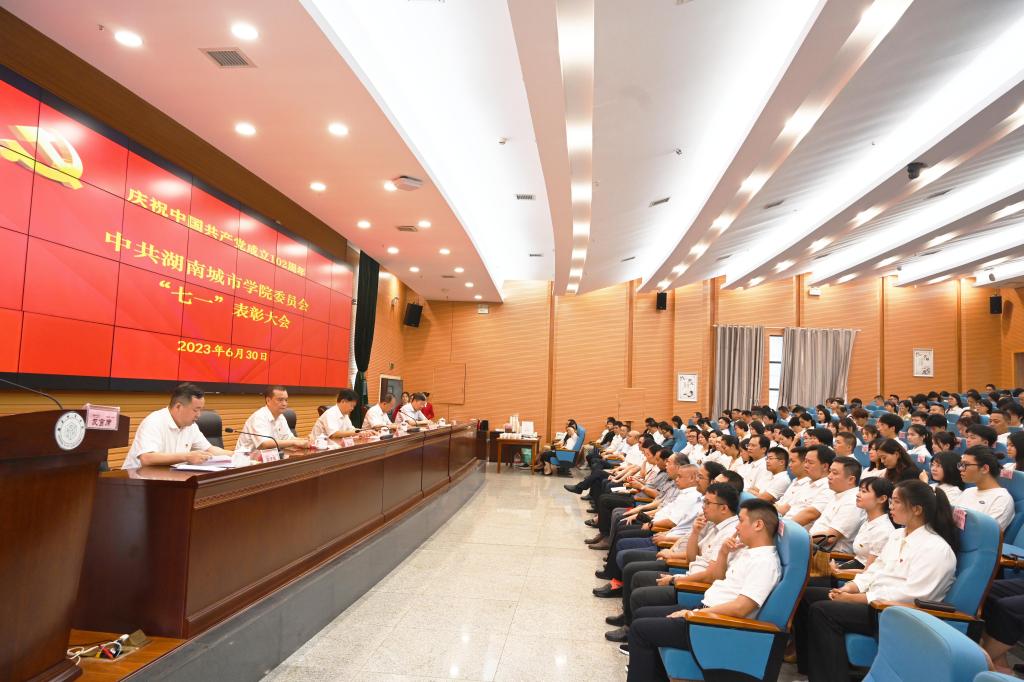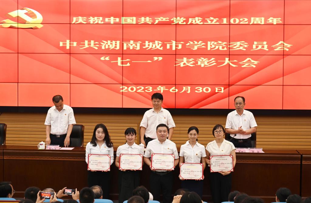 本网讯(通讯员 冷红)6月30日下午,永利官网2023年“七一”表彰大会暨“光荣在党50年”纪念章颁发仪式在图书馆报告厅举行,在家的校领导,副处级以上党员领导干部、表彰对象、党支部书记、师生党员代表、全体辅导员参加会议。会议由党委副书记、校长何振主持。