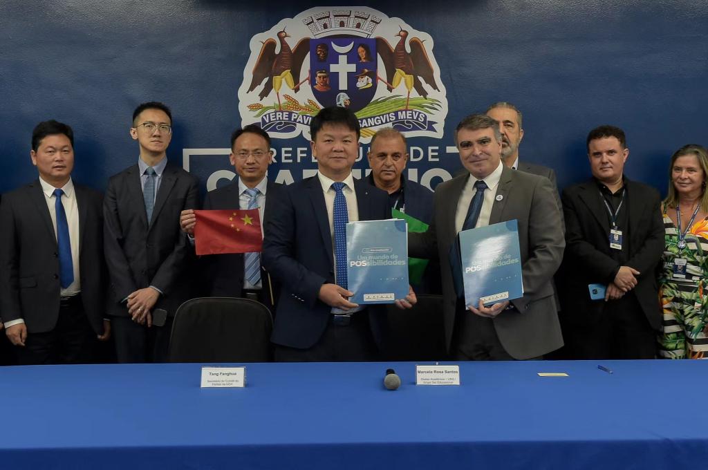 汤放华代表学校与巴西高校签署合作谅解备忘录。