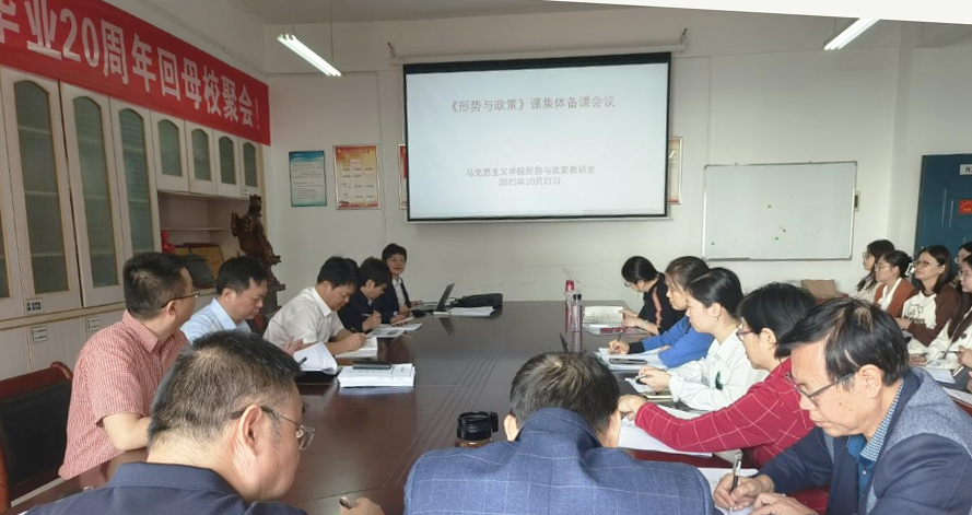 本网讯(通讯员 郭绚霞)10月21日上午9点,永利官网马克思主义学院召开2023年秋季学期“形势与政策”课集体备课会。校党委书记汤放华出席备课会并作指导。马克思主义学院院领导及担任本学期“形势与政策”课程教学的老师参加。会议由形势与政策教研室主任郭绚霞主持。