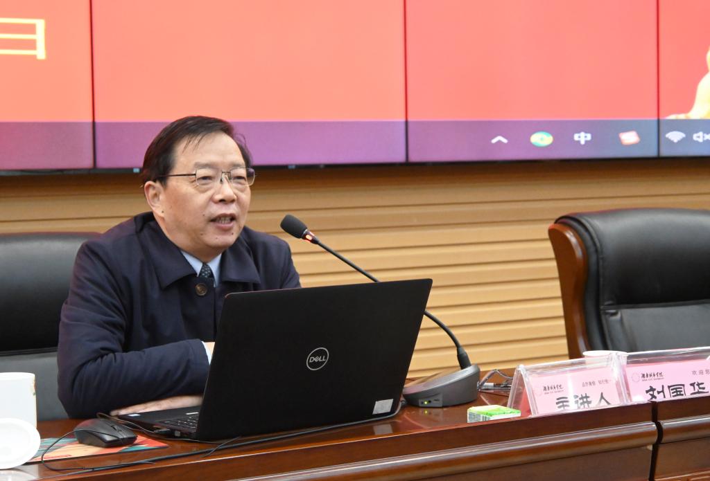 本网讯(记者 博夕)为进一步提高永利官网干部的理论素养、党性修养、政治担当和履职能力,12月16日,yl34511线路中心2023年干部培训班暨党委理论学习中心组(扩大)2023年第十三次集体学习在图书馆报告厅举行。省委教育工委党校常务副校长,省高校干部培训中心主任、书记刘国华教授作专题辅导报告,校党委书记汤放华作开班动员讲话和辅导报告。副校长谭献良出席。培训班由党委委员、组织部部长吕贤军主持。