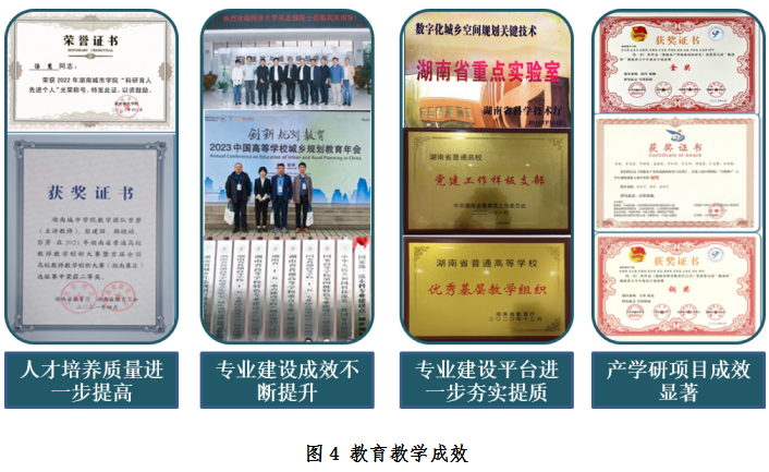 4.守正创新,面向中小城镇培育综合素质。围绕服务中小城镇、开展创新创业教育,通过大学生创新创业课题、互联网+、社会实践、“暑假三下乡”、乡村振兴设计下乡等,培养服务中小城镇“全科医生式”规划建筑人才;采用五育并举,培养毕业生全面发展综合素养。学校设计院获湖南省普通高校校企合作创新创业教育基地和中心。