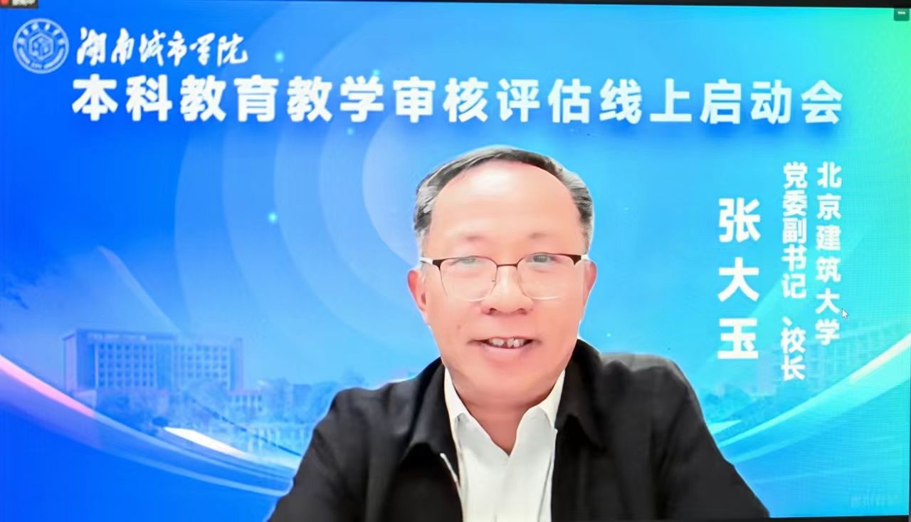专家组组长、北京建筑大学校长张大玉,专家组全体成员,省教育厅副厅长兰勇,专家组项管、秘书线上参会。永利官网全体校领导,副处级以上干部,各学院系室主任,评建办、教务处全体成员以及师生代表参加会议。