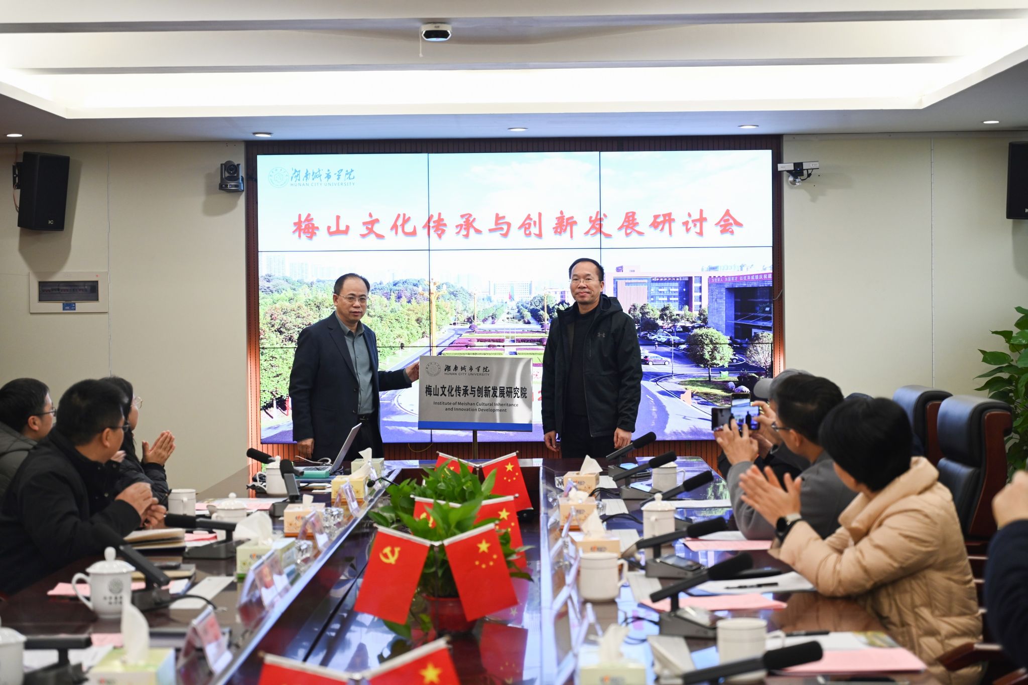 会上,永利官网科研处处长胡科宣读了成立梅山文化传承与创新发展研究院的相关文件。在与会人员的共同见证下,何振与陈宇翔共同为永利官网梅山文化传承与创新发展研究院揭牌。