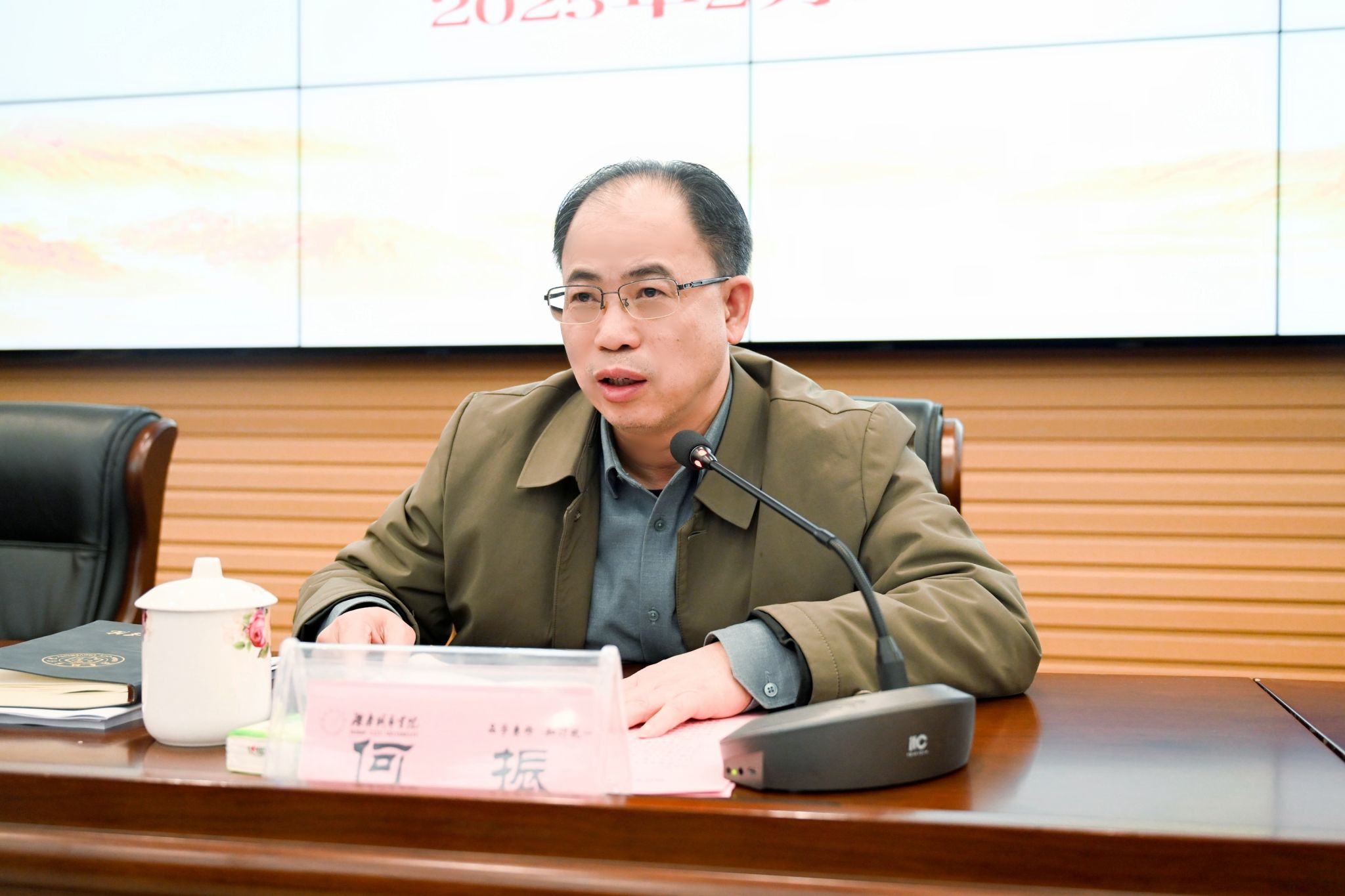 何振对2025年重要工作进行了精心部署,他强调要做好五个方面的重点工作:一是强化高质量党建引领,合力开启“升大申博”新篇章。旗帜鲜明加强党的政治建设,坚持不懈用党的创新理论凝心铸魂,守正创新做好宣传思想文化工作,争先创优筑牢基层堡垒,多向发力强化干部队伍建设,凝心聚智激发干事创业合力,驰而不息推进全面从严治党。二是深化高素质人才培养,着力塑造立德树人新格局。要突出思政铸魂育人实效,促进学生健康成长与全面发展,深化本科教育教学改革,推进研究生教育扩容提质,提高招生就业创业工作质量,拓展开放办学与国际合作水平。三是突出高层次人才引育,大力激活师资队伍新动能。要扎稳师德师风“第一标准”,抓实教师能力提升,深化人事管理体制机制改革,加大“高精尖缺”人才引培力度。四是聚焦高水平学科建设,奋力打造科技创新新高地。要持续优化学科布局,深入推进学科分类发展,精心做好学位点培育,系统强化有组织的科研,大力培育高水平科研成果,着力提升科技成果转化和社会服务能力。五是完善高效能治理体系,齐力构建管理服务新生态。要科学编制“十五五”发展规划,持续提升治理效能,不断完善校园基础设施建设,携手创建更高水平安全文明校园。