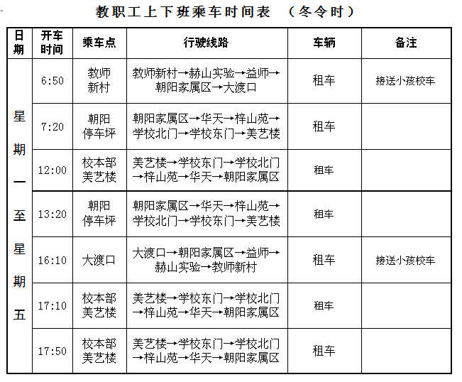 2.教职工上下班乘车时间表(冬令时)