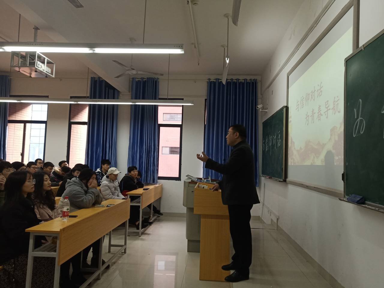 1126日下午,机械与电气工程学院党总支邀请了阳同光院长与入党积极分子开展了一次“与信仰对话、为青春导航”讲座。阳同光院长结合个人成长经历,以“砥砺信仰,励志初心”为题,围绕爱国、励志、求真、力行,谈理想信仰的重要性,他强调信仰是共产党人的灵魂和命脉;阳同光院长有着深厚的哲学理论基础和丰富的社会实践经验,他在座谈中还结合国庆70周年阅兵及群众游行的观后感,联系自己在部队、职业大学的工作经历,将理论化为学生能听懂,能理解的语言,深入浅出的给学生阐释了信仰、信念、共产主义信仰的原理及概念,讲解了中国共产党的成长发展史,希望大学生们树立坚定的理想信念,坚守共产党人的精神家园,建设牢固的信仰大厦,勇担使命,砥砺前行。