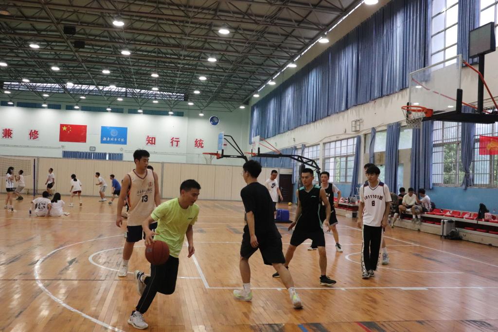 本次友谊赛可谓是强强交锋。比赛还未开始,球场周围就已经围满了前来参观的同学,双方球员也在比赛场地做起了热身运动。球员踏着自信的步伐上场篮球赛正式开始。随着裁判员手中篮球抛至空中,球员们奋力跳跃去抢夺篮球,比赛现场的气氛急剧攀升比赛开场一分钟后,在教师代表队的默契配合下,成功投入比赛开局的首球。赛场上,双方球员们全神贯注,全力以赴的投入到“对战”之中,双方球员你来我往,“战斗”得不可开交,场下的观众为他们呐喊助威!随着时间的推移,精彩的操作也不断上演,这边一个后撤三分,那边一个急停变向比赛双方娴熟精妙的技术引来观众们阵阵喝彩和掌声。中场休息之余,各队讨论策略,一起互相加油打气势必赢下这场比赛。随着双方进球数不断增多,比赛也进行的如火如荼,热闹非凡。比赛进行到第三节,教师代表队略微落后于毕业生代表队,教师代表队不甘示弱,奋起直追,积极投入比赛当中在教代表队坚持不懈的努力下,双方的比分不断拉,最终,双方比分持平结束比赛,师生篮球对抗赛在轻松欢脱的氛围中落下帷幕。比赛结束后,师生互相握手,毕业生向教师表达自己的感恩之情,教师向毕业生寄予美好的毕业祝愿。