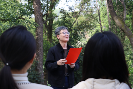 “每一次重温入党誓词,都是一次对初心的叩问。”教工第二党支部副书记陈昶在随后的现场党课中,以《传承红色基因 担当育人使命》为题,将曾士峨烈士“革命理想高于天”的精神与新时代高校教师的育人使命紧密结合。他强调:“作为教育工作者,我们要把烈士精神融入课堂,培养有家国情怀、有创新本领的时代新人;青年学子更要以英烈为镜,将个人理想融入强国建设、民族复兴的伟业。”
