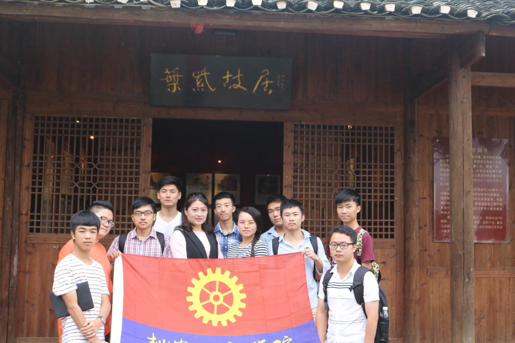 在叶紫故居,同学们通过参观、学习,与当地村民交流连接到:叶紫,是益阳赫山区龙光桥镇新茶坊人,原名余昭明,叶紫是其发表成名处女作的笔名。他是著名左翼青年作家,我国近代著名小说家,是无产阶级革命文学的创始人之一。1939年因病回乡,于贫病中不幸逝世。来到这,学生们先参观了叶紫故居的厨房与猪舍。再是,叶紫先生的堂屋,这里摆放着叶紫先生及其夫人照片,另外还有其以前生活的物件。之后,则是故居的厅堂。这里讲述了叶紫先生生平的事迹,包括他的出生家境、去长沙求学和参加兰溪农民运动详细介绍等。最后是叶紫父母的卧室,墙上陈列着众多余家为革命牺牲的忠烈。参观完后,大家都为叶紫先生这位英年早逝的革命家而敬佩,同时也收到了一次深刻的爱国主义教育。