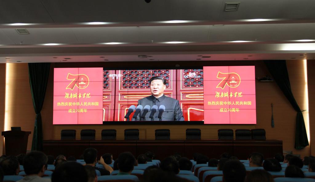 (本网讯)“长安街上,三军列阵,铁甲生辉……”2019年10月1日上午,yl34511线路中心图书馆报告厅内传出央视主播雄浑有力之声。这是yl34511线路中心正在组织部分师生收看新中国成立70周年阅兵活动,其余师生也通过集中收看或者手机、电脑、电视等多种方式进行了收看。收看结束后,广大师生将千言万语,都化作真诚、质朴、美好的祝福:祝愿祖国母亲生日快乐,中国万岁!