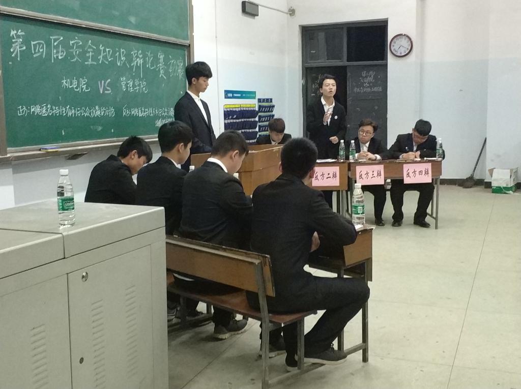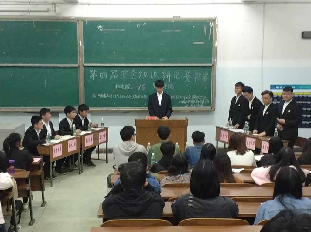 2018年3月23日19:00,由校团委保卫部组织的校园安全知识辩论赛于一教207拉开帷幕。出席本次辩论赛的评委和点评嘉宾有建筑与城市规划学院团副陈芊、副主席张明蕙,体育学院副主席文波,土木工程学院优秀辩手谢津生、黄思闽。对战双方为管理学院和机械与电气工程学院,双方辩手围绕“网络匿名是否有利于保护个人隐私”展开激烈角逐。