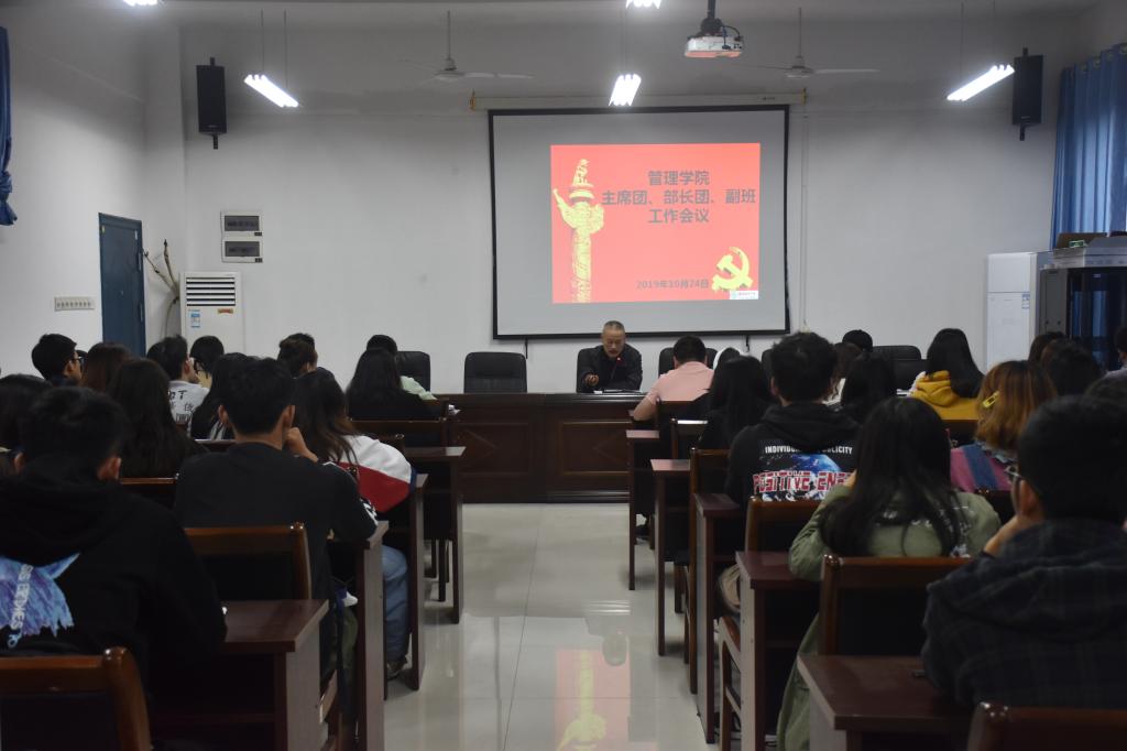 学风,是读书之风、是治学之风,更是做人之风,为提升我院学风建设水平,营造良好的学习风气,提高管理学院团学会干部综合素质,10月24日16:00,管理学院在管理楼504会议室召开主席团、部长团、副班工作会议,辅导员王方俊、李姗、熊鹏飞、张力、王卡妮、刘洁莹参加了会议。