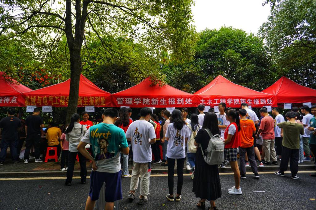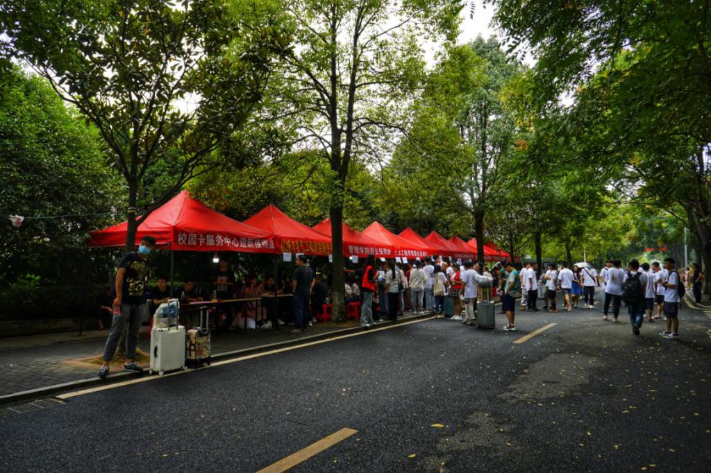 2020年9月12日上午,yl34511线路中心首次开始了它的正式迎新之旅。送孩子报道的家长提着行李扛着被褥,龙城大道两旁的树木郁郁葱葱,树荫下,身穿红色志愿服的志愿者正引领新生办理开学手续。