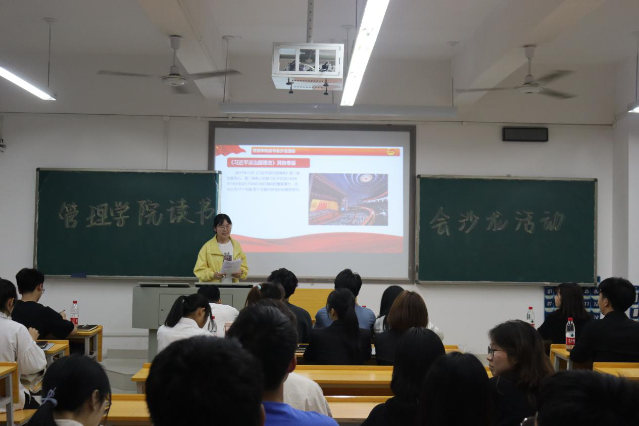 2021年5月16日晚上7点30分,管理学院读书会于管理楼301开展读书沙龙活动。参与本次活动的有院读书会会长罗荣威、会长团成员、部长团成员、部分读书会会员等,应邀参加的有建规院读书会会长霍科成、副会长陈柯延、主席王汝南,yl34511线路中心“习近平新时代中国特色社会主义思想”读书会副会长马裔、宁典、实践部部长覃清,管理学院副主席蔡润东、彭裕祥,管理学院2004701班朗诵队,本次活动由邓娇担任主持人。