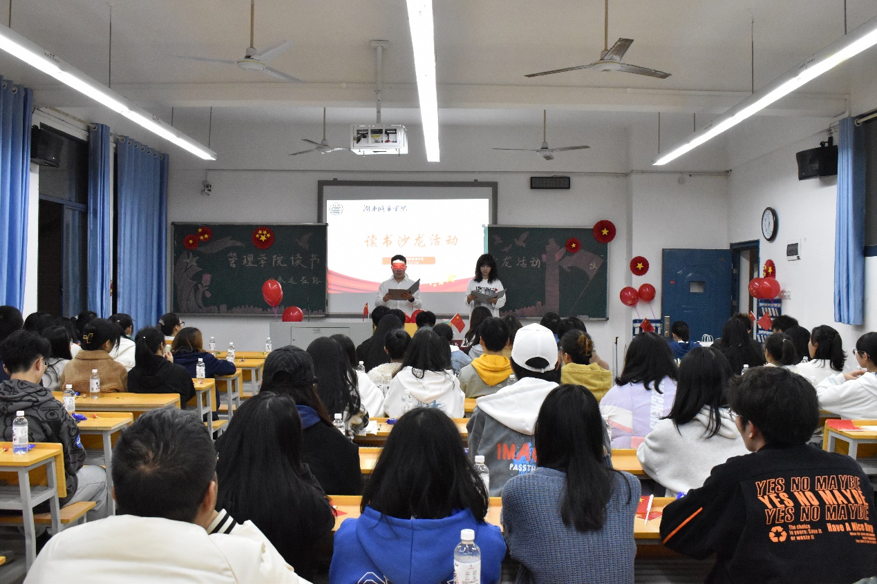 活动开始,主持人介绍了前来参加此次活动的嘉宾。活动第一项,主持人简单介绍了《永远在路上》这部作品的主要内容,并就为什么要反腐、怎样赢得清风拂华夏、如何保持反腐败斗争的高压气势三个问题进行了交流讨论。随后,主持人为大家分享了一篇关于《永远在路上》这部作品的读后感。活动第二项,读书会管理学院分会全体干事带来了诗朗诵《读中国》。活动第三项,主持人为大家介绍了我国今年以来的反腐成就,具体讲解了中央巡视监督的对象、内容以及成效。呼吁广大青年在反腐工作中应学会使用监督权,举报腐败行为;学习法律知识,利用法律维护自己的权利;参加宣传,让更多的人投入到反腐倡廉的活动中;努力学习,提高自身素质,将来为社会做出贡献。并在观看了反腐斗争视频后,带领大家一起学习了习近平总书记的十大反腐警句。活动第四项,合唱团演唱歌曲《没有共产党就没有新中国》。活动最后,罗胡洋对全体参与人员表示由衷感谢并总结了此次活动的意义。