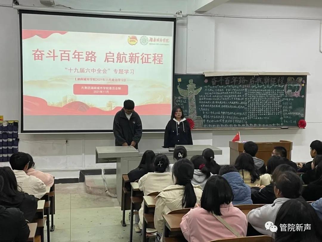 2021年11月27日,管理学院团委组织部组织了大一至大三的学生进行主题为“奋斗百年路,启航新征程”主题团课学习,通过此次学习,同学们进一步了解了党带领人民作出的伟大贡献和成就,深刻地认识到了党成立的伟大历史意义。