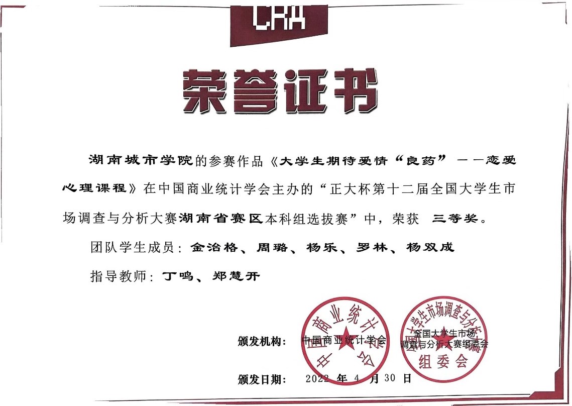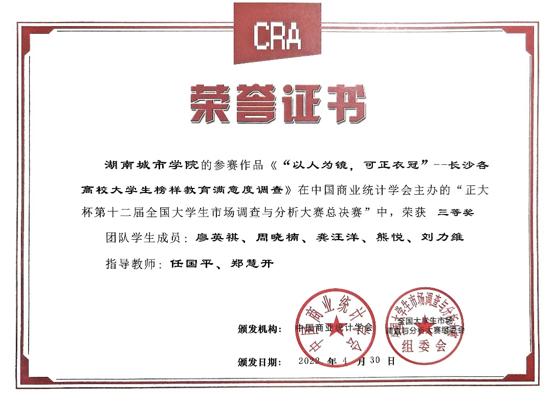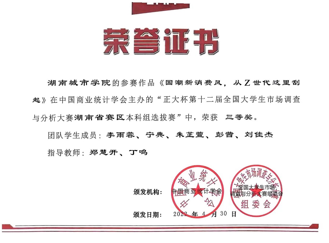 全国大学生市场调查与分析大赛由中国商业统计学会主办,是中国高等教育学会《全国普通高校大学生竞赛排行榜内竞赛项目名单》中重要的国家级科技创新竞赛。本届大赛于2021年9月启动,全国共有815所高校、近18万名学生报名参赛。其中湖南赛区参赛学校有17所,知识赛通过人数为3320人,入选省赛队伍数为150支。