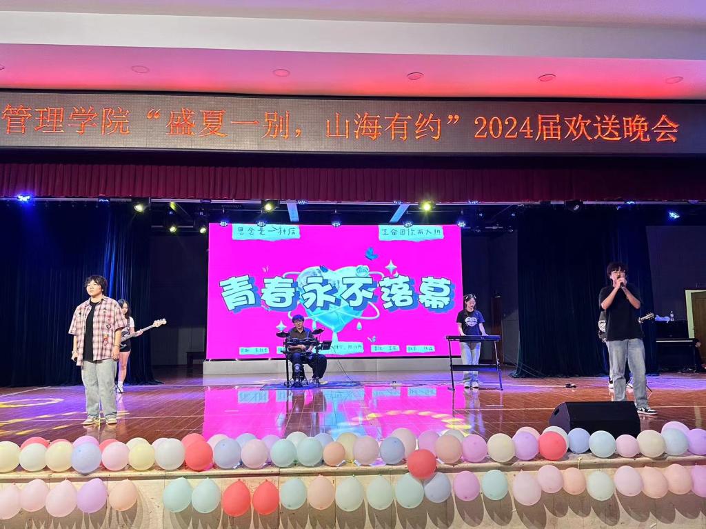 本网讯(通讯员 胡威朋 王海琼)恢弘盛世,青春盛宴,在这美好时节,管理学院于2024年6月6日晚19时举行“盛夏一别,山海有约”2024届欢送晚会。学院领导班子成员、系室老师、毕业班辅导员、班主任及2024届毕业生共同观看了此次晚会。