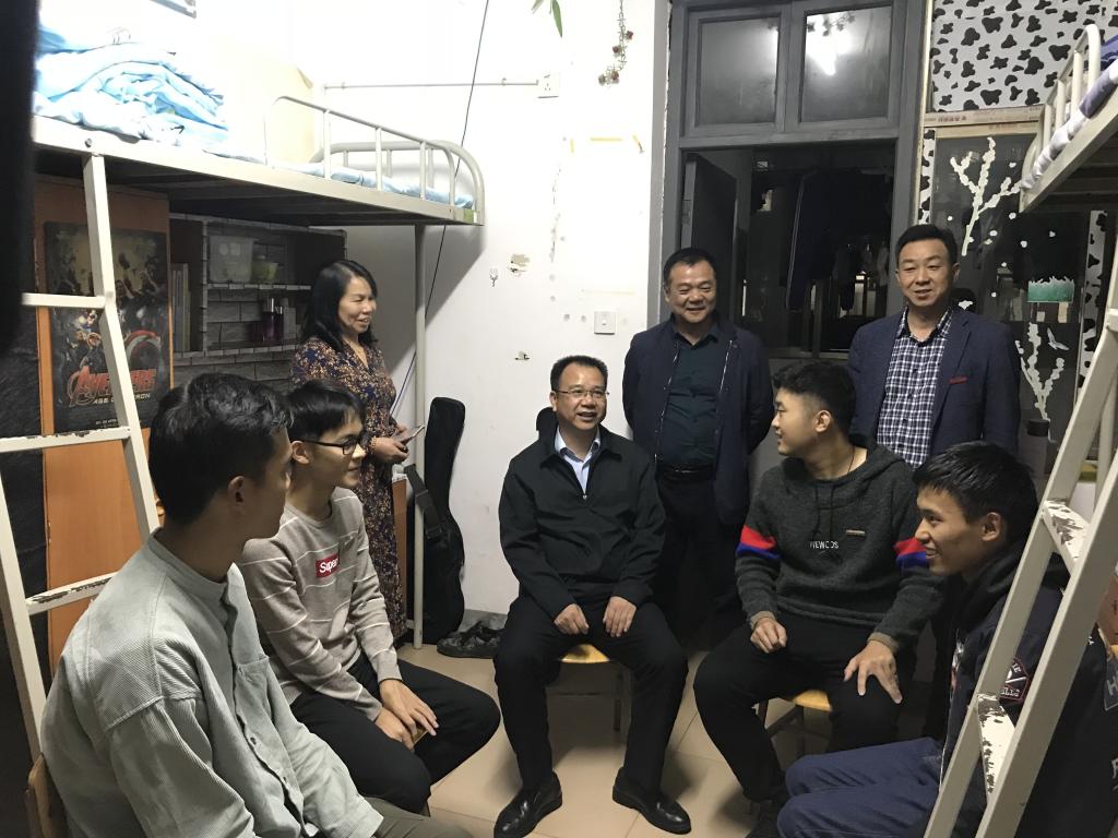 11月1日晚,李建奇校长深入管理学院下寝来到其所帮扶寝室,18级旅游管理专业1804701班10栋414寝室。李建奇校长与来自西藏、新疆、吉林和湖南岳阳的四位学生进行了亲切交流,详细询问其学习生活情况,关心他们对湖南气候、饮食、语言及其他方面的适应情况,鼓励他们克服困难、积极融入新环境,愉快的生活、学习。李校长表达了对同学们的热切期望,鞭策他们珍惜时光,好好学习,放下手机,多进图书馆,不断充实自己,成就美好大学生活。