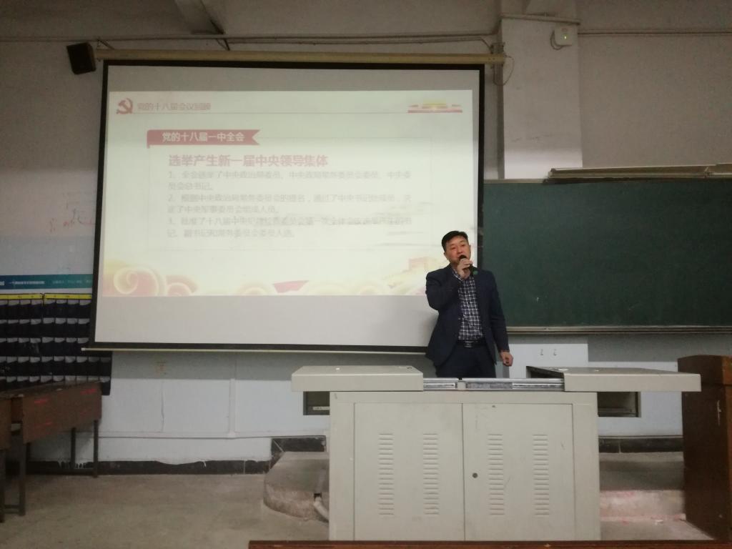 李双清博士向学生党员介绍十九大的主要思想并阐述了十九大召开的重要意义;回顾从十八届一中全会到七中全会的重要建设成就,并就此引申出十九大所涉及的相关建设计划;重点为学生党员讲解习近平总书记在中国共产党第十九次全国代表大会上的报告,使学生党员对报告有了更加深刻的体会;最后,李双清博士号召学生党员树立不忘初心、永远跟党走的信念。