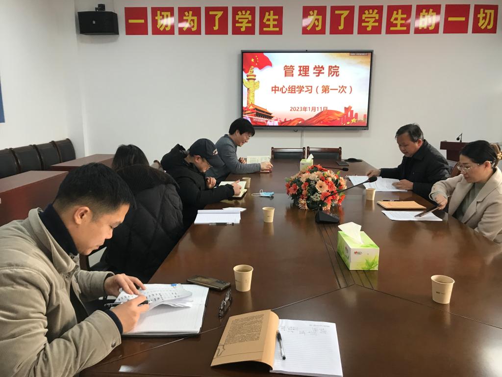 2023年1月11日下午10点30分,学院党委理论中心组在管理楼622会议室开展了集中学习,学习由党委书记王正安主持,党委理论中心组全体成员参加了此次学习。