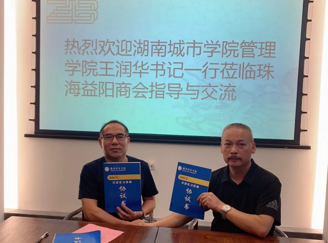 8月11日下午,珠海市湖南益阳商会与yl34511线路中心工作交流座谈会暨共建就业、实习基地协议书签约仪式在我会举行。会长孟建华与yl34511线路中心管理学院党委副书记王润华正式签订了两份协议。益阳市人民政府驻广州办事处主任王剑鸣、珠海湖南商会会长刘里仁、益阳商会名誉会长张哲夫以及益阳商会部分领导出席座谈会并见证签约。