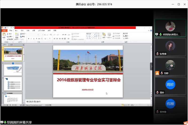 5月25日晚,旅游管理专业2020届毕业生线上实习答辩会通过腾讯会议平台顺利举行。旅游管理专业2020届全体毕业生和旅游管理教研室专业老师参加了此次实习答辩会。