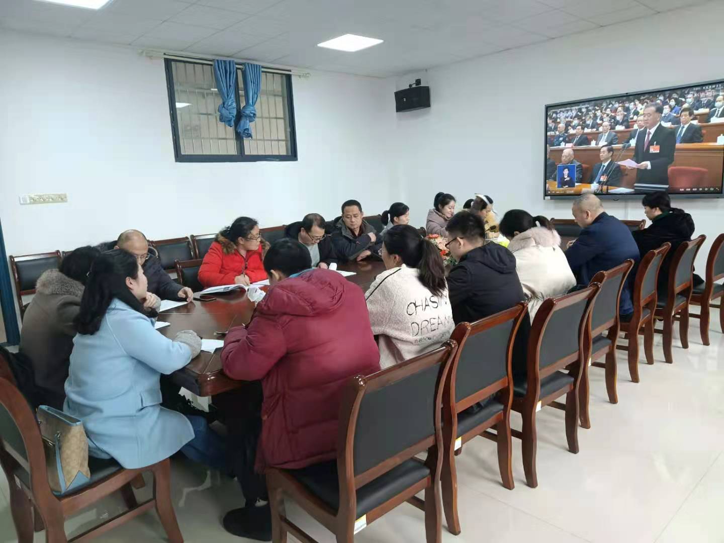 会上,各支部通过电视、学校宣传部网站下载的文献资料及时了解两会相关动态、认真学习两会精神。随后各支部书记认真领学了《yl34511线路中心2021年工作要点》,对《工作要点》中的六大点、34条进行了详细解读。