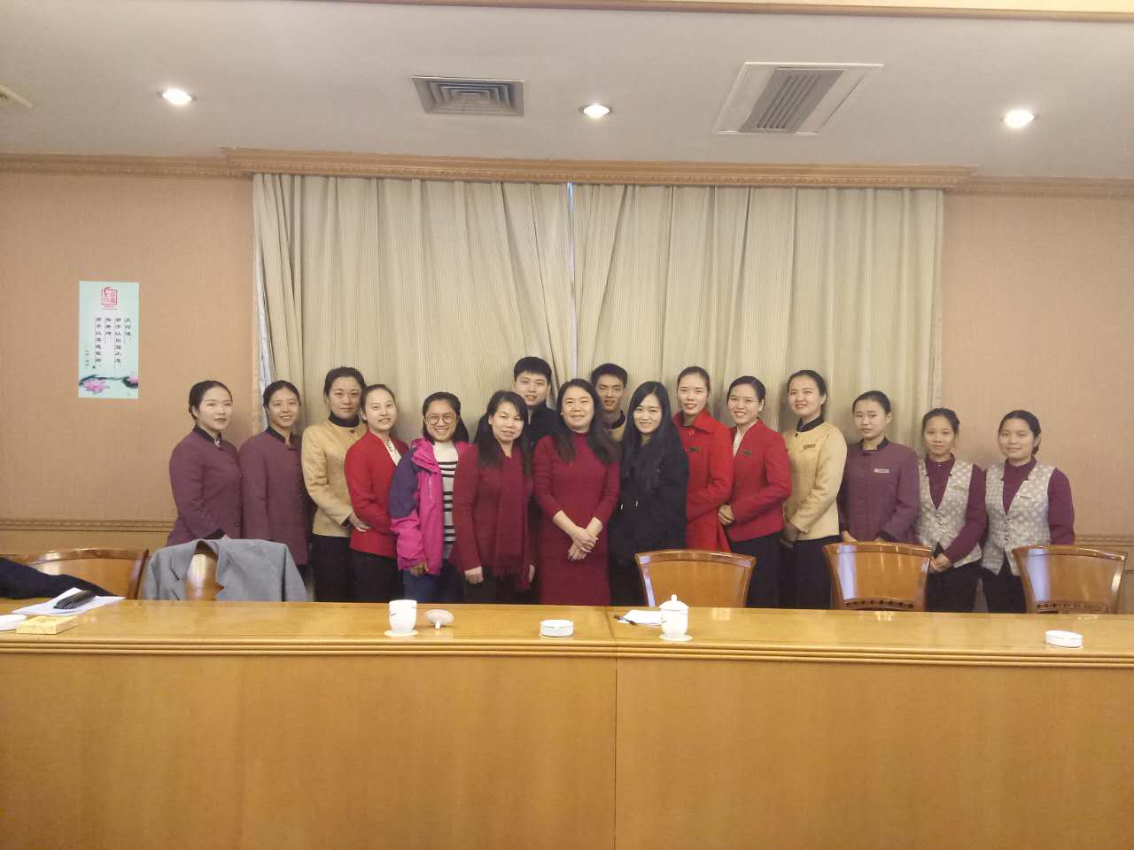 2016年12月25日,yl34511线路中心党委党员、纪委书记姚春梅教授、yl34511线路中心管理学院院长汤腊梅教授,顶着寒风细雨来到湖南宾馆,深入实习基地检查指导实习工作并看望在这里实习的商学院的学生。