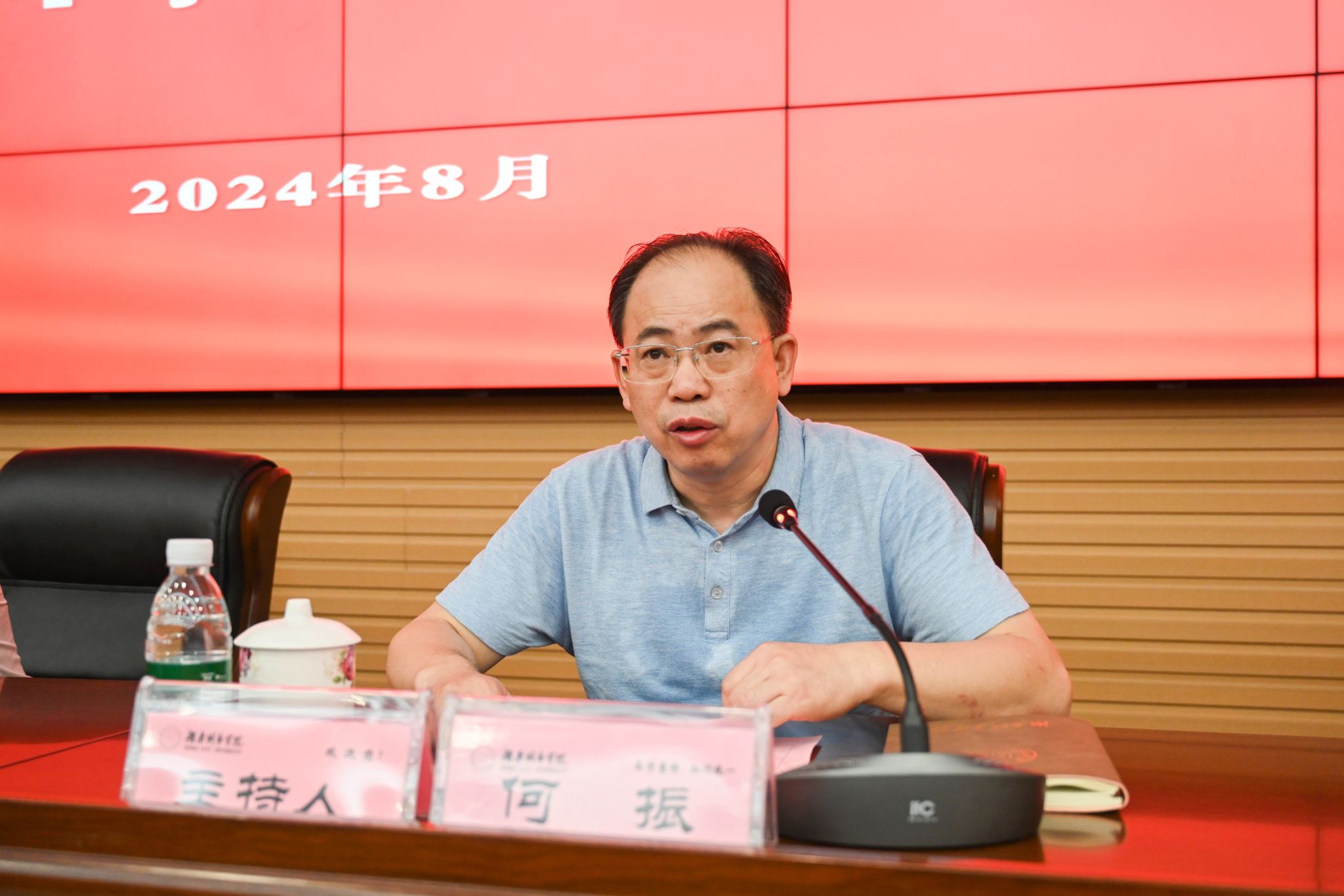 何振以《贡献支撑中国式现代化的地方高校力量》为题,围绕“中国式现代化的历史脉络和内涵特征”“中国式现代化进程中高等教育发展”“贡献支撑中国式现代化的城院担当”等三个方面进行了解读。他指出,要深化科技体制机制改革,充分激发创新创造活力,强化行业特色,聚焦关键领域集中力量进行突破,激发校办企业内生动力,推动社会服务升级。