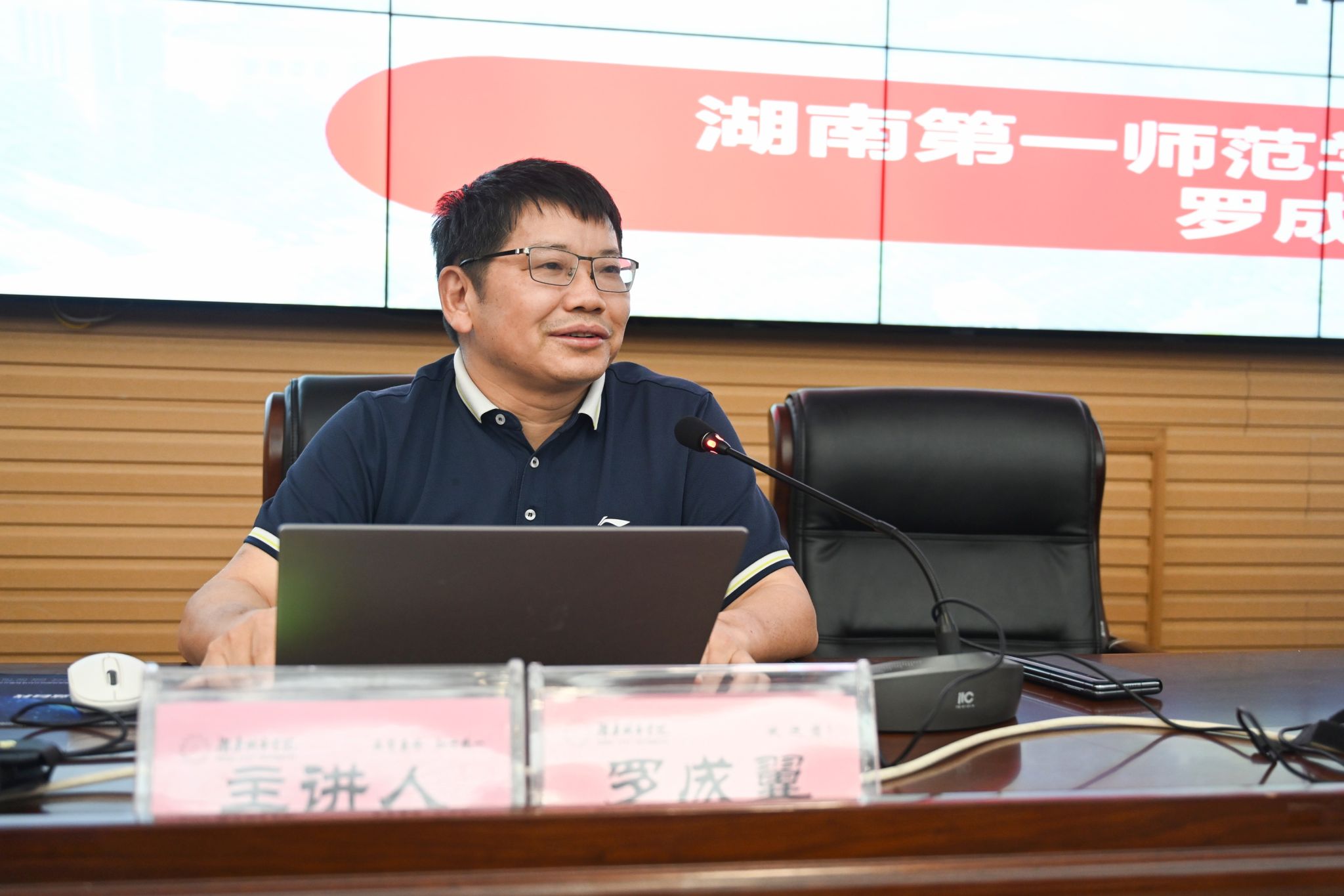 湖南第一师范学院党委书记罗成翼以《牢记总书记嘱托,落实立德树人根本任务——学习贯彻习近平总书记考察一师讲话精神的思考》为题,围绕“习近平总书记考察调研一师的基本情况”“习近平总书记讲话精神的核心要义与启示”“新时代落实立德树人根本任务的实践路径”进行了深入解读。