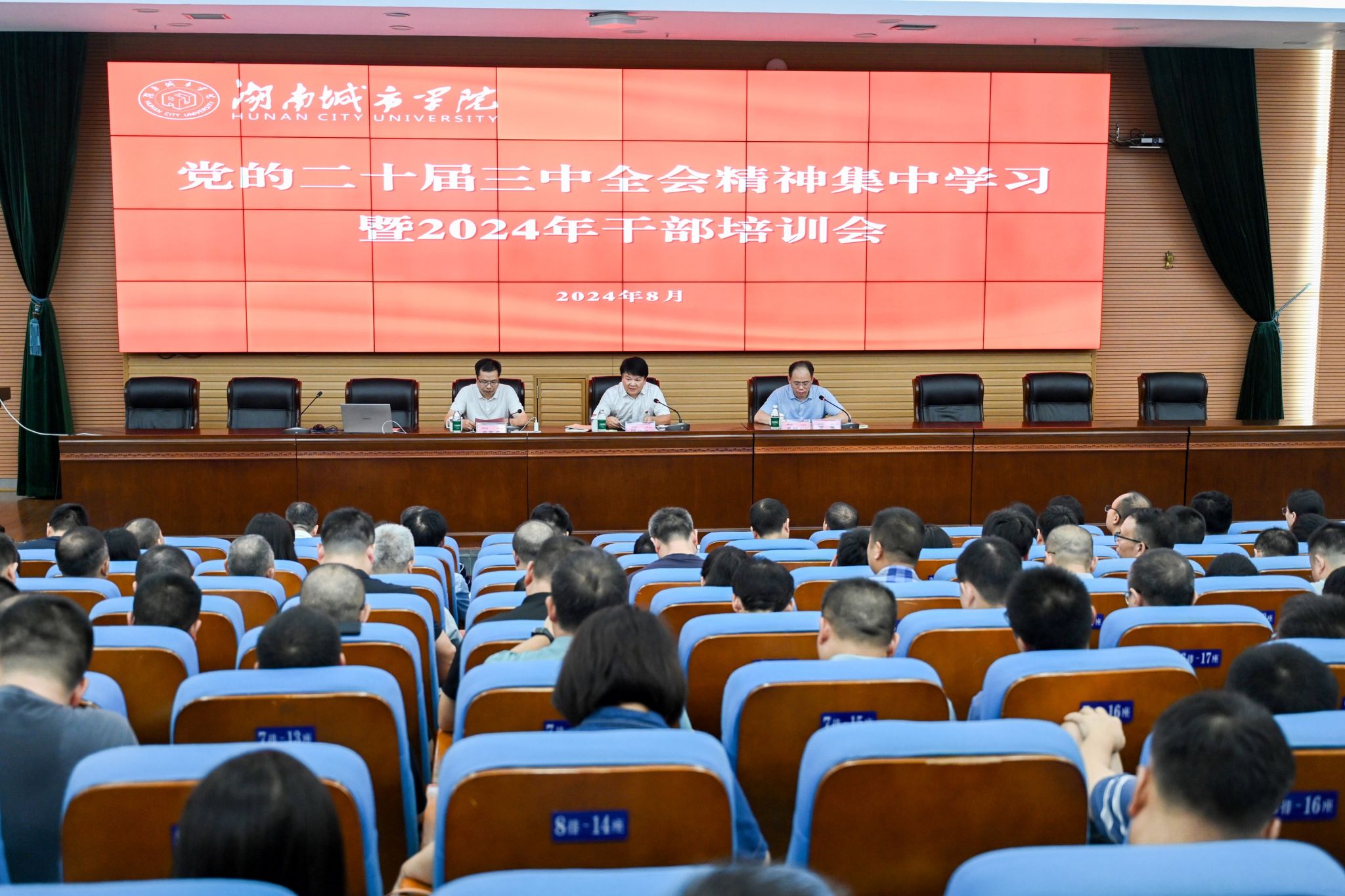 本网讯(通讯员 谢文静)为深入学习贯彻习近平新时代中国特色社会主义思想,落实党的二十大、二十届三中全会作出的重大战略部署,教育引导永利官网干部树立正确的权力观、政绩观、事业观,提高干部推动高质量发展本领、服务群众本领、防范化解风险本领。8月27至28日,学校举办党的二十届三中全会精神集中学习暨2024年干部培训会。全体在家校领导、全校科级以上干部参加培训。
