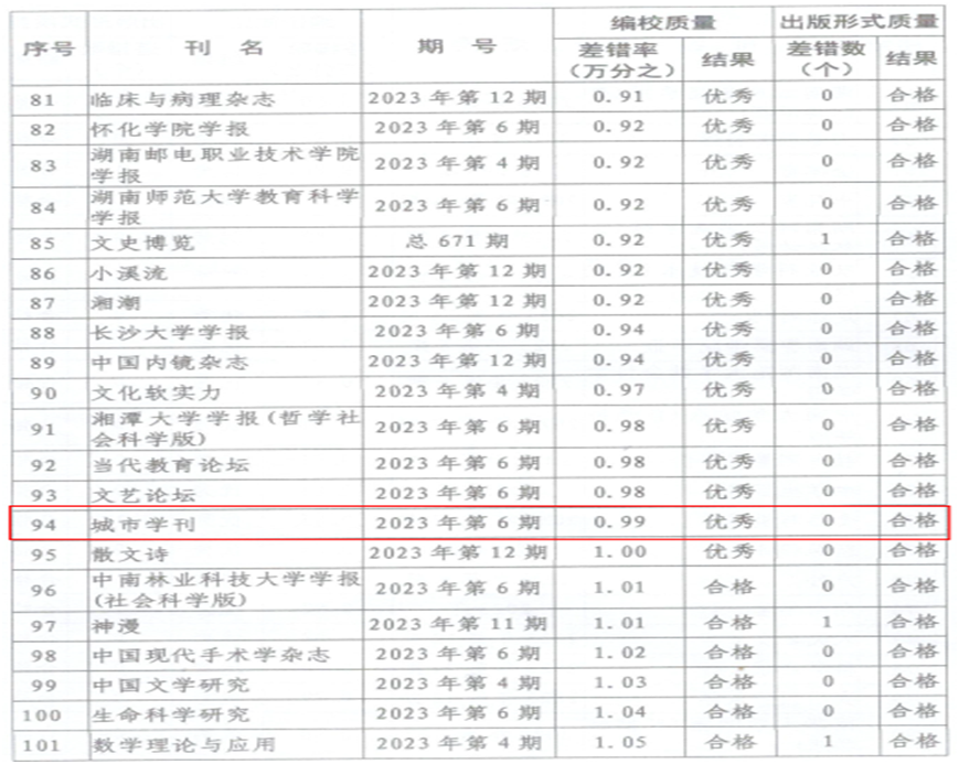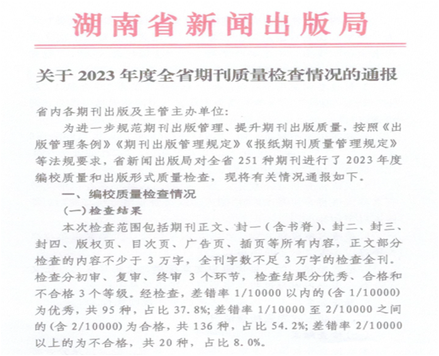 近日,湖南省新闻出版局下发《关于2023年度全省期刊质量检查情况的通报》,《yl34511线路中心学报(自然科学版)》和《城市学刊》获评“优秀”等级。