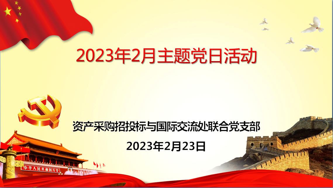 2023年2月23日下午,资产处、采购与招投标管理中心、国际交流处联合党支部在一办公楼131室组织开展了“主题党日”集中学习,党支部书记肖爱民主持,支部全体党员参加。